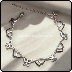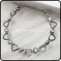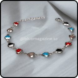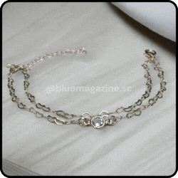 Pulseira folheada a prata duas voltas em correntes mini corações com pedra